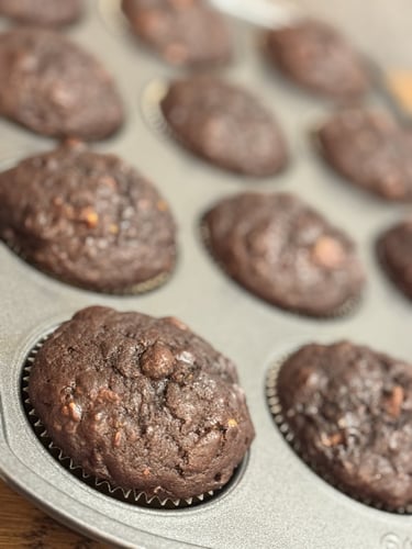 Chocolate Banana Muffins with Raisins & Pistachios